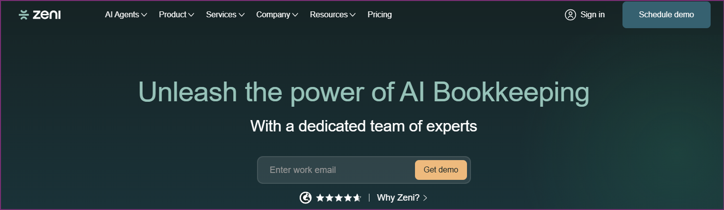 Zeni combines AI automation with human bookkeeper oversight, providing a managed service rather than pure software. The platform targets US-based startups seeking comprehensive financial operations support.