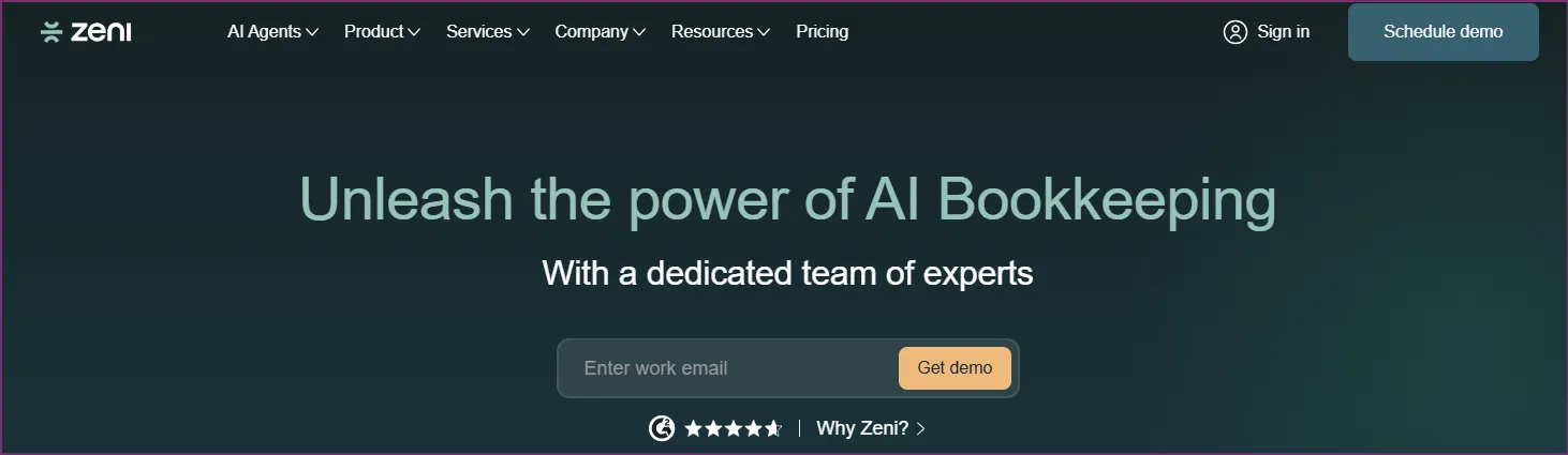 Zeni combines AI automation with human bookkeeper oversight, providing a managed service rather than pure software. The platform targets US-based startups seeking comprehensive financial operations support.